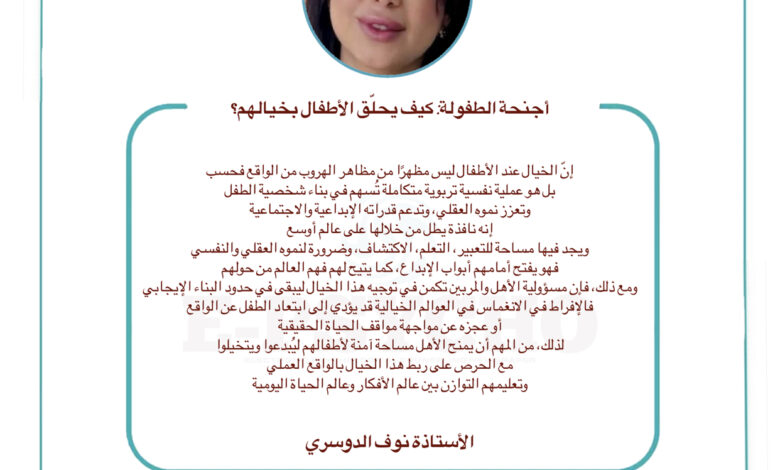 أجنحة الطفولة: كيف يحلّق الأطفال بخيالهم؟ … بقلم الأستاذة نوف الدوسري