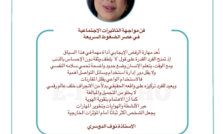 فن مواجهة التأثيرات الاجتماعية في عصر الضغوط السريعة … بقلم الأستاذة نوف الدوسري