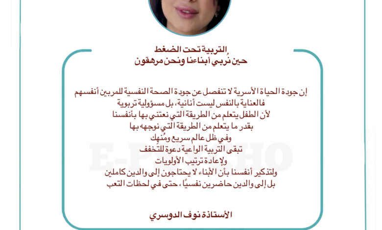 التربية تحت الضغط: حين نُربي أبناءنا ونحن مرهقون … بقلم الأستاذة نوف الدوسري